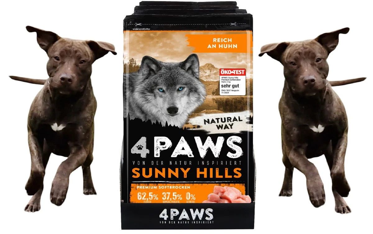 4Paws Sunny Hills Premium Softbrocken Verpackung – Testsieger Stiftung Warentest