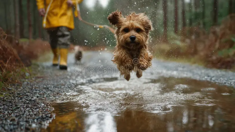 Such dir eine bekannte Runde und mach daraus ein Spiel: jede Pfütze muss mindestens einmal durchlaufen werden. Dein Hund springt rein, du lobst ihn locker, fertig. Die meisten Hunde finden das plötzlich spannend statt nervig. Bonus: danach sind sie oft richtig müde, weil Springen und Planschen mehr Energie kostet als normales Laufen.